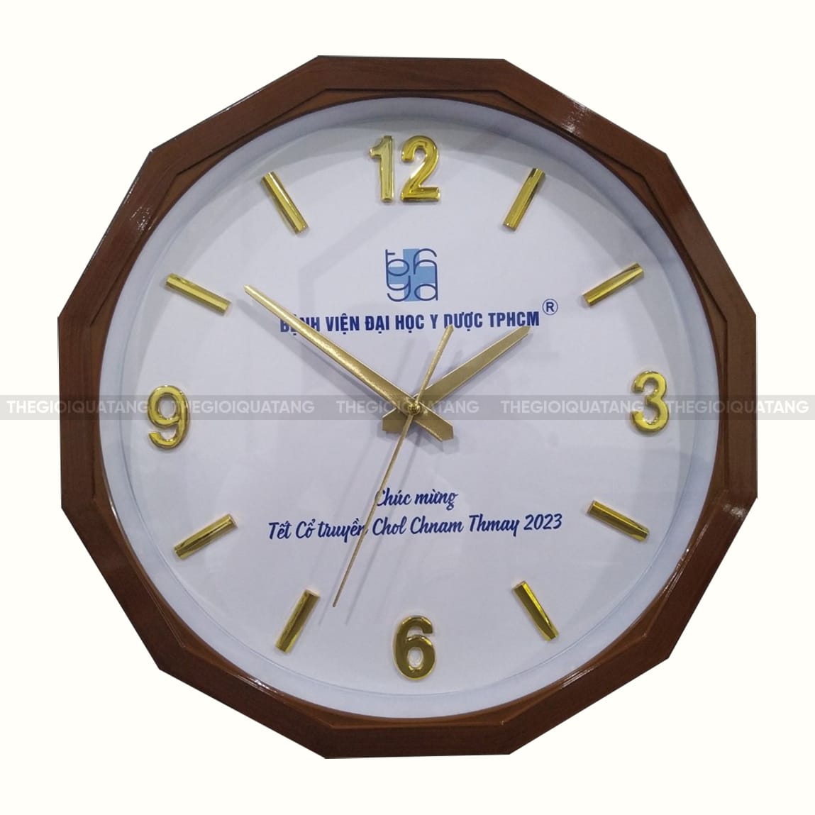 Sự tương phản tinh tế giữa sắc nâu cổ điển của khung và mặt đồng hồ màu trắng thanh khiết giúp bộ số trở nên nổi bật, dễ dàng quan sát ở mọi góc độ. Bên trong vẻ ngoài lịch lãm là bộ máy HQ vận hành bền bỉ theo năm tháng, hoạt động mượt mà chỉ với một viên pin AA tiện lợi. Với công nghệ in kỹ thuật số hiện đại, mọi chi tiết nhận diện thương hiệu đều được thể hiện sắc nét, cam kết độ bền màu cao đi cùng chế độ bảo hành dài hạn lên đến 48 tháng từ Thế Giới Quà Tặng. Hãy để mỗi giây phút trôi qua đều mang đậm dấu ấn riêng biệt của bạn. Liên hệ ngay để trải nghiệm dịch vụ Sản xuất đồng hồ treo tường thiết kế theo yêu cầu chuyên nghiệp nhất!